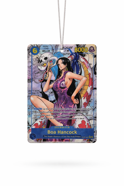 Add a calm, refreshing touch to your car with the Nami manga air freshener, now available in a soothing lavender fragrance. Designed with a vibrant, collectible card-style illustration of Nami, this air freshener brings together eye-catching anime artwork and a soft floral scent that transforms your driving experience.
